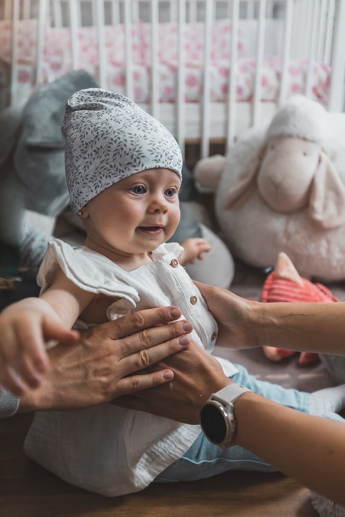 Dětská čepice ve velikosti pro miminka od narození do 3 měsíců, obvod hlavy 28-30 cm.  Čepice je vyrobena z bavlněného jersey, které obsahuje 92% bavlny a 8% lycry.… Zobrazit více