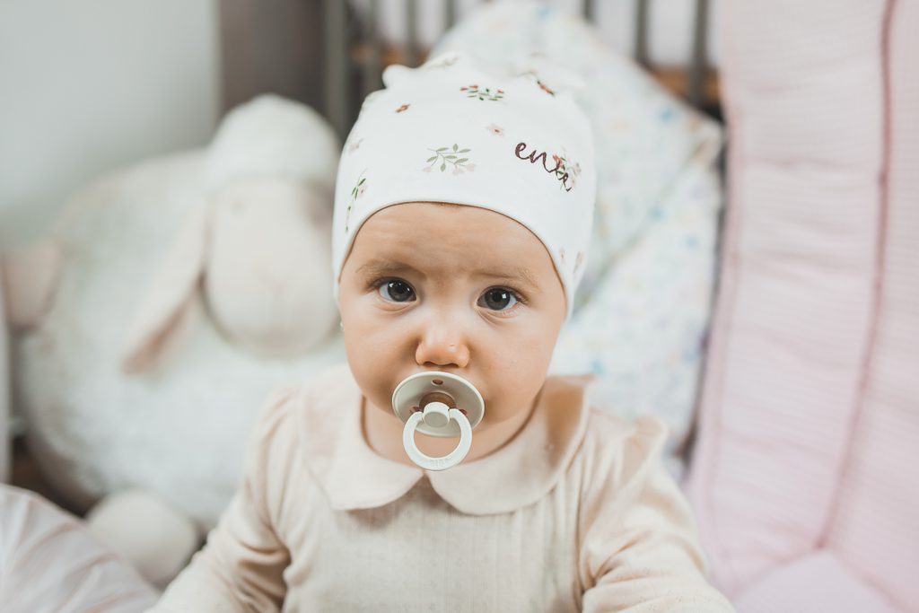 Čepice je vyrobena z bavlněného jersey, které obsahuje 95% bavlny a 5% elastanu.