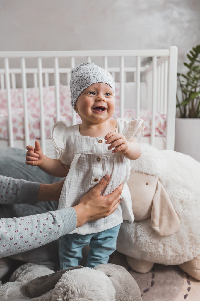 Dětská čepice ve velikosti pro miminka od 3 - 6 měsíců, obvod hlavy 30-34 cm.  Čepice je vyrobena z bavlněného jersey, které obsahuje 92% bavlny a 8% lycry. Látka je… Zobrazit více