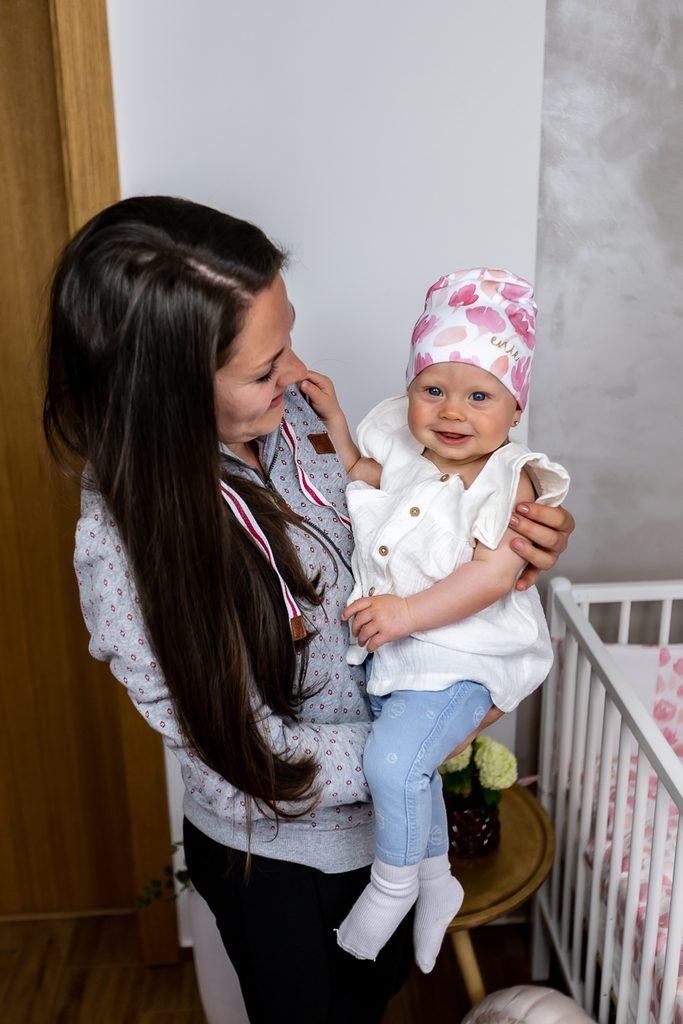 Dětská čepice ve velikosti pro miminka od 3 - 6 měsíců, obvod hlavy 30-34 cm