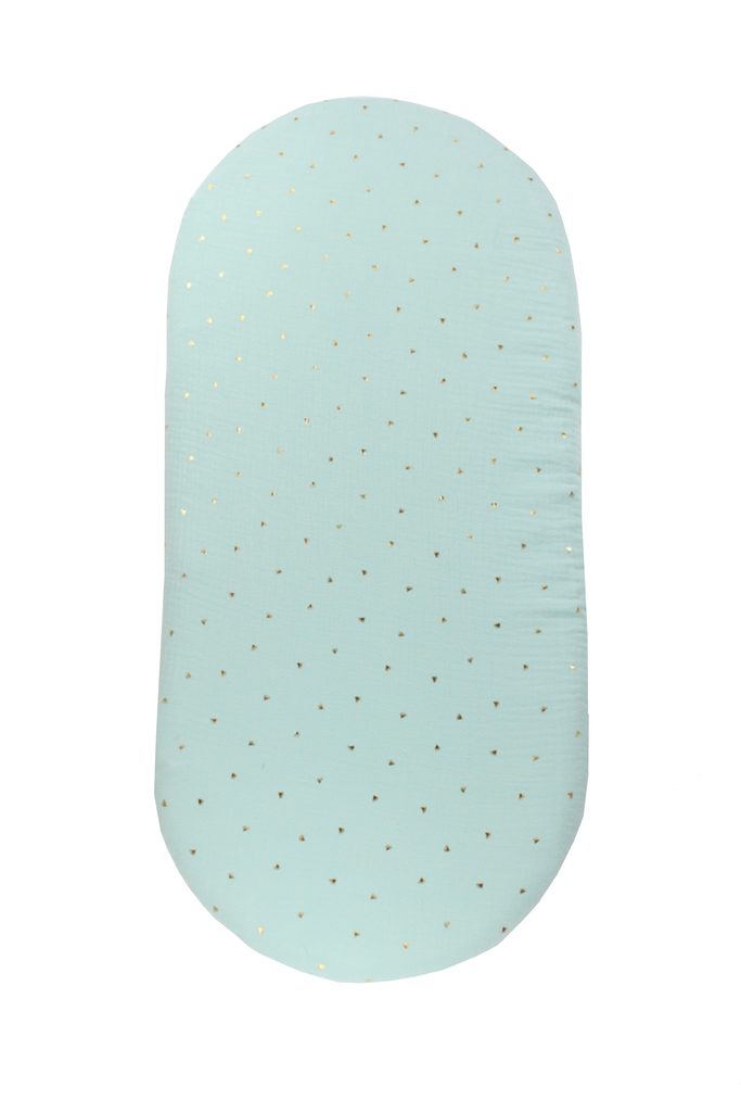 enie baby Mušelínové prostěradlo do kočárku mentolové se zlatými lístky