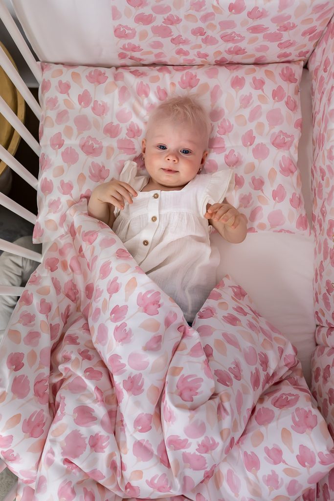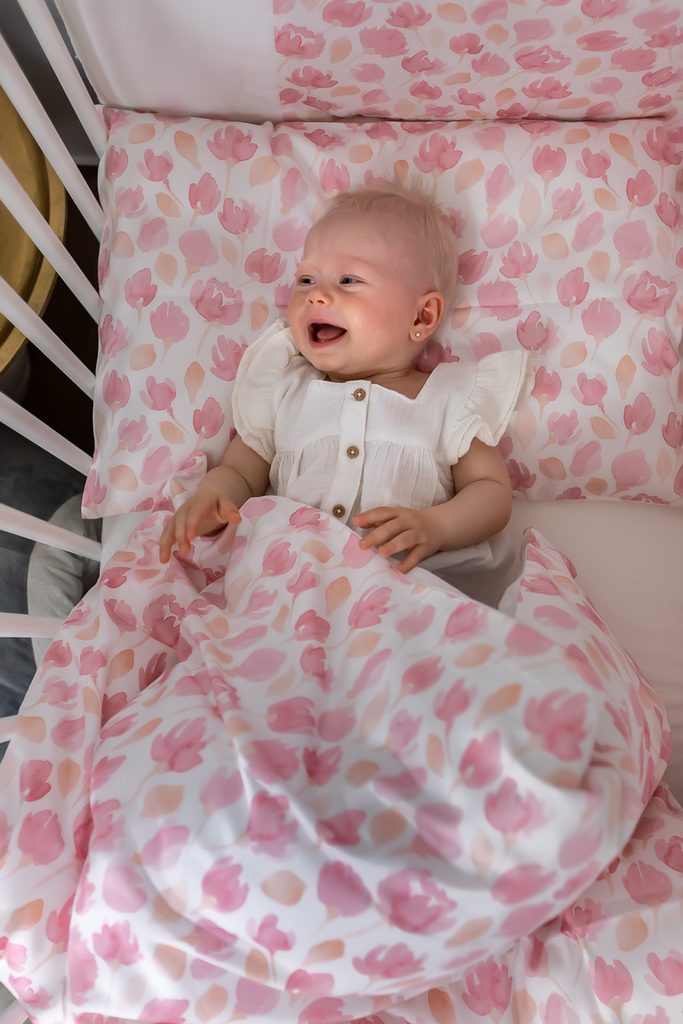 Povlečení do postýlky o rozměrech na přikrývku 100x135cm a polštářek 40x60cm. Bavlněná látka je velmi jemná a hladká.
