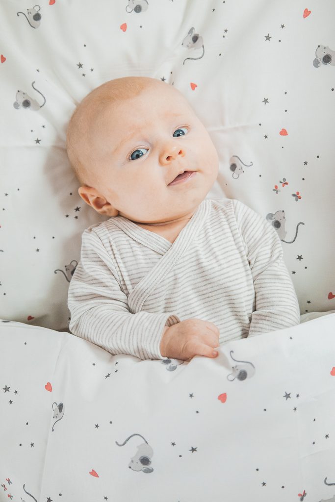 Povlečení do postýlky o rozměrech na přikrývku 100x135cm a polštářek 40x60cm. Bavlněná látka je velmi jemná a hladká.