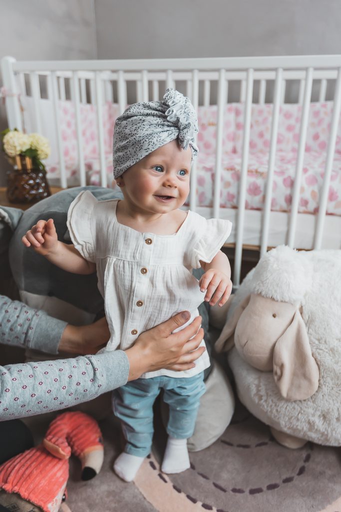 Dětský turban s ozdobnou přední částí ve velikosti pro miminka od narození do 3 měsíců.