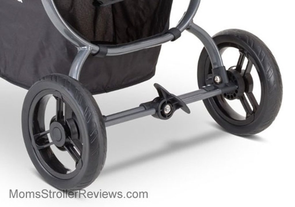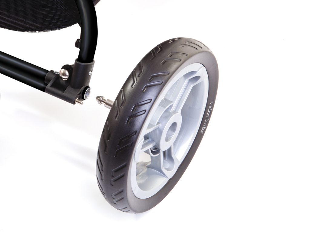- Nafukovací kola – zadní kola lze jednoduše vyjmout pro ještě větší kompaktnost složeného kočárku / přední otočná kola s aretací